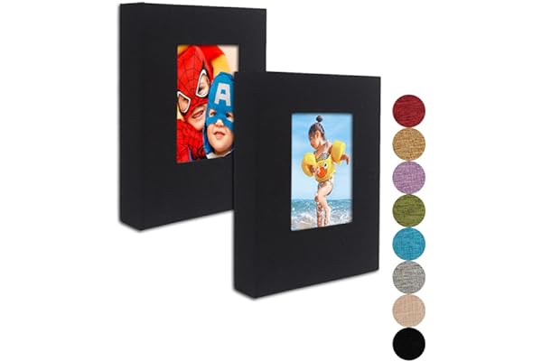 Clear Pages, Linen Cover with Front Window, Pack of 2, Each Small Album Holds 52 Photos, Small Brag Book Photo Album for 4x6 Pictures, Black Fabric