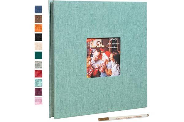 Spbapr Photo Album Self Adhesive 3x5 4x6 5x7 8.5x11 Magnetic Scrapbook 11 x Width 10.6 (Inches) 40 Pages Linen Cover DIY Photo Album with A Metallic Pen