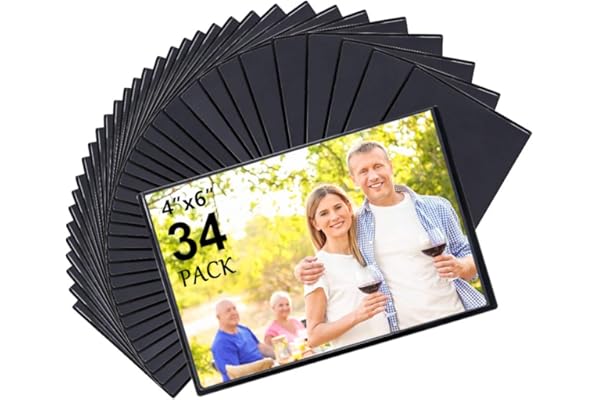 34 Pack, Holds 4 x 6 Inches Photos Pictures, Black Magnetic Photo Frames with Clear Pocket for Refrigerator, Fridge, Locker, Office Cabinet by Tebik