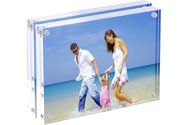 4x6'' Clear Double Sided Block Set, Desktop Frameless Magnetic Photo Frame (2 Pack)