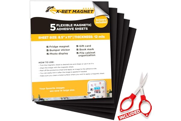 5 PCs Each 8" x 10" - Flexible Magnetic Paper with Strong Self Adhesive - Sticky Magnet Sheets for Photo and Picture Magnets, Stickers and Other Craft Magnets