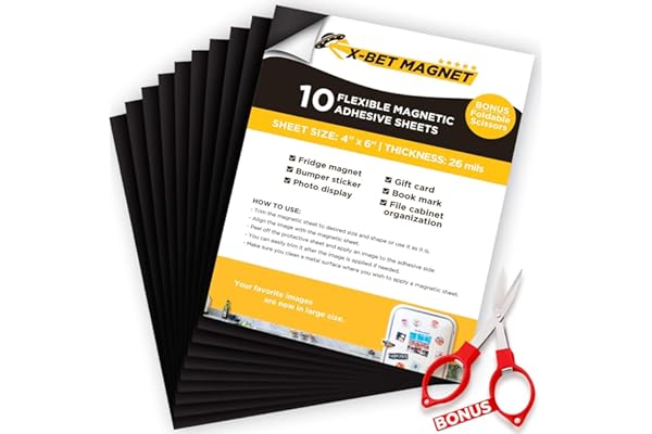 Each 4" x 6" - Flexible Magnetic Paper with Strong Self Adhesive - Sticky Magnet Sheets for Photo and Picture Magnets, Stickers and Other Craft Magnets