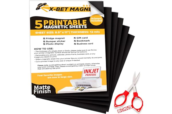 5 PCs Each 8.5” x 11” - Flexible Magnet Sheets Non Adhesive for Photo and Picture Magnets - Matte Printable Magnetic Paper for Cars, DIY and Crafts