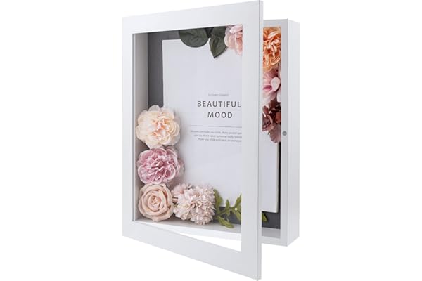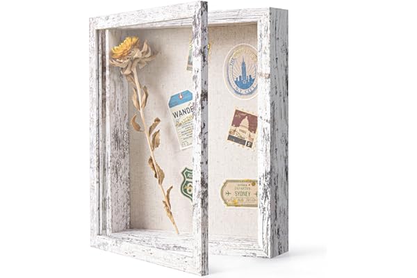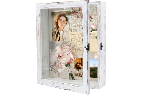 Wooden Shadow Box Display Case,Large Shadow Box for Flowers,Memorial Shadow Box for Keepsakes Baby Wedding Photo Memorabilia Awards Ticket Wine Cap,White