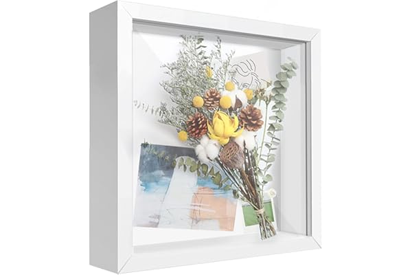 3D Picture Frame, Display Case Box for Memorabilia, Baby Items, Wedding Memories, Crafts, Tickets and Photos (White, 8x8)