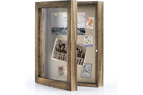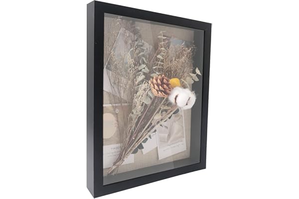 Muzilife Shadow Box Picture Frame with Linen Board Deep Wood Glass Display Case Ready to Hang Memory Box Baby Sports Memorabilia