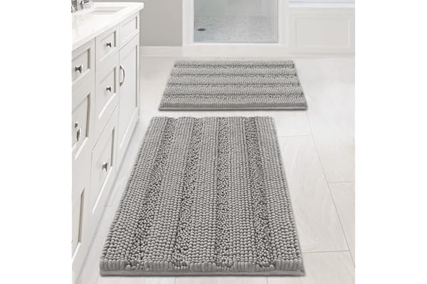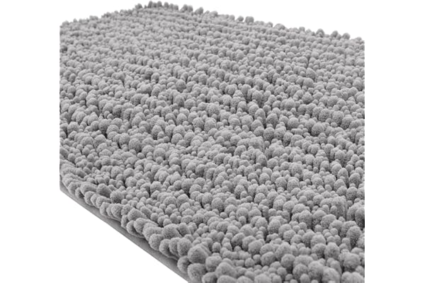 24 x 17 Inches, Luxury Original Shaggy Chenille Bath Mat, Soft and Cozy, Super Absorbent Water, Non-Slip, Machine-Washable, Thick Modern Bath Rugs for Bathroom Bedroom, Grey