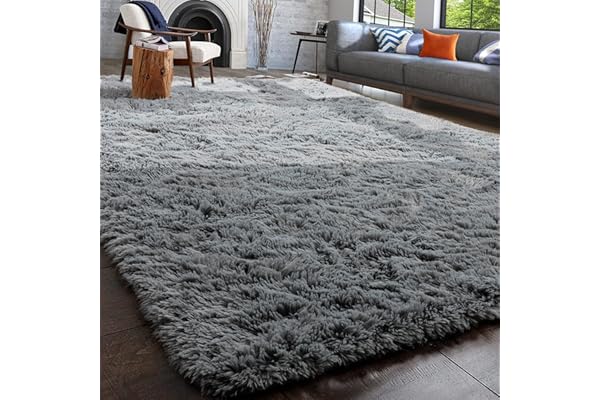 4x6 Feet, Plush Area Rugs for Living Room Bedroom, Fluffy ​Rug for Nursery Playroom Dorm Room, Shag Plush Rug for Teen Room Decor, Grey