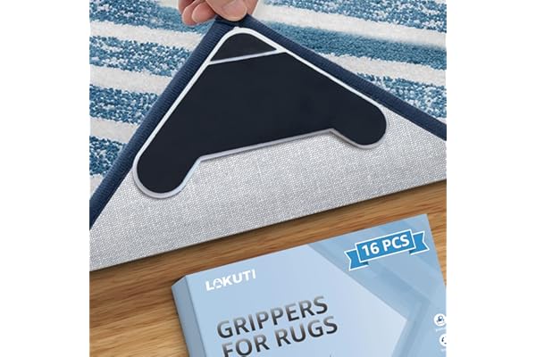 16 Pack Non-Slip Rug Pads Grippers for Hardwood Floors, Anti Slip Rug Corner Grippers for Area Rugs, Rug Stoppers to Prevent Sliding for Tile, Reusable Rug Stickers for Wood Floor