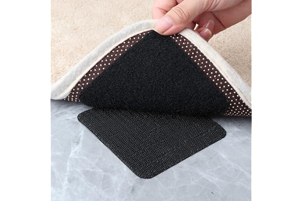 Non Slip Washable Rug Tape Grip Carpet Corner, Hook and Loop Rug Pads Non Curl Reusable Rug Stoppers Keep Your Area Rug Flat on Hardwood Floors and Tiles
