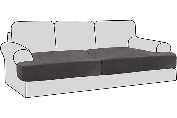 H.VERSAILTEX Stretch Velvet 2 Piece T Cushion Sofa Slipcovers Individually Sofa Cushion Covers for 2 Cushion Couch Seat Cushion Covers for Sofa Seat Cushion Covers Stay with Elastic Bands