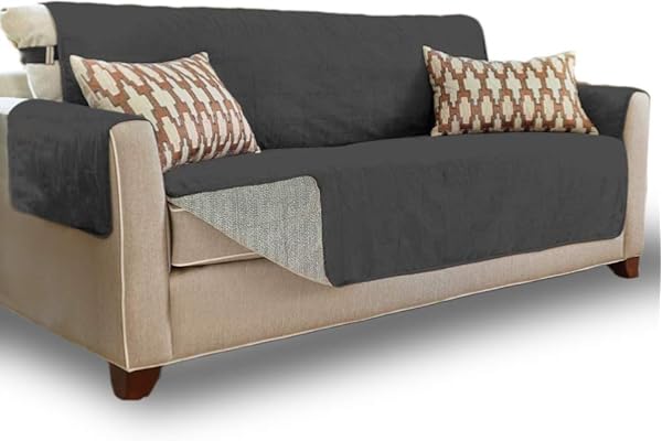 Large, 70" Seat Width, Patented Slip Resistant Durable Furniture Slipcover with Straps, Suede-Like Washable Couch Cover for Dogs, Kids, Pets, Dark Gray