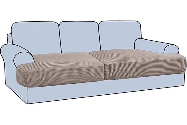 H.VERSAILTEX Stretch 2 Piece T Cushion Sofa Slipcovers Individually Sofa Cushion Covers for 2 Cushion Couch Sofa Seat Cushion Covers with Elastic Bands Featuring Thicker Jacquard Fabric