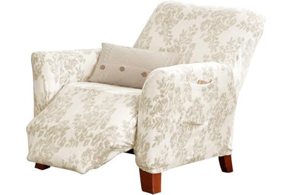 Velvet Recliner Furniture Protector, Soft Anti-Slip, High Stretch (Recliner, Silver Cloud - Toile)