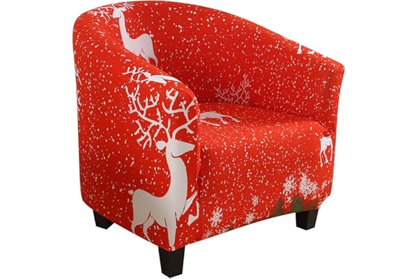 SearchI Christmas Club Chair Slipcover Stretch Barrel Chair Covers Printed Xmas Tub Chair Slipcovers Soft Spandex Armchair Cover Removable Couch Furniture Protector Arm Chair Cover for Living Room