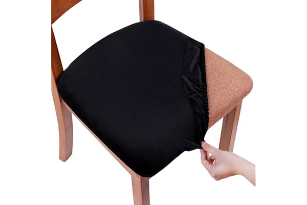 Smiry Original Velvet Dining Chair Seat Covers, Stretch Fitted Dining Room Upholstered Chair Seat Cushion Cover, Removable Washable Furniture Protector Slipcovers with Ties