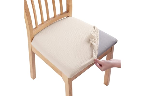 Genina Seat Covers for Dining Room Chair Seat Slipcovers Kitchen Chair Covers (Beige, 4 Pcs)