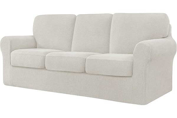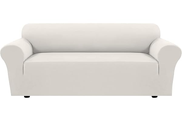 H.VERSAILTEX 2022 New Version Sofa Cover 1-Piece Stretch Couch Covers for 3 Cushion Couch Sofa Slipcover Spandex Non Slip Soft Form Fit Furniture Protector with Elastic Bottom (Sofa, Ivory)
