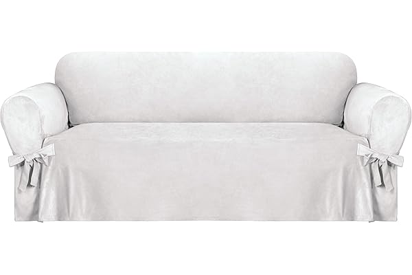 Luxury Velvet Sofa Cover with Ties, One Piece Sofa Slipcover for Living Room (White, Sofa)