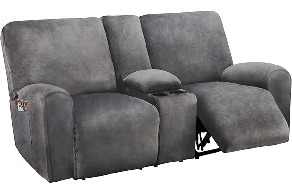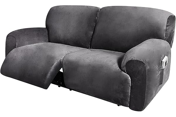 8-Piece Velvet Stretch Loveseat Reclining Sofa Covers, 2 seat Loveseat Recliner Cover, Thick, Soft, Washable, Loveseat Slipcovers (Dark Grey)