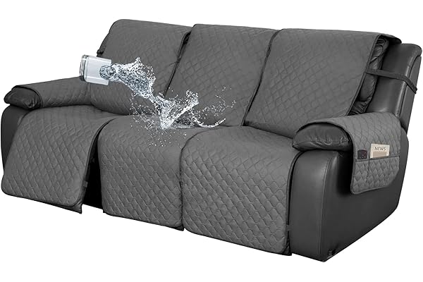 Dual Waterproof Couch Cover for Recliner, 1- Piece Jacquard Sofa Cover, Leakproof Sofa Slipcover for Kids, Pets, Dog and Cat (Recliner, Dark Gray)
