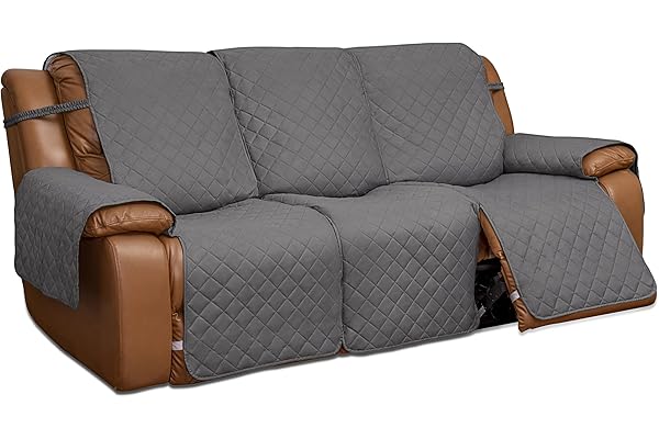 Reversible Couch Cover for 3 Seat Recliner, Split Sofa Cover for Each Seat, Furniture Protector with Elastic Straps for Kids, Dogs, Pets(3 Seater, Gray/Light Gray)