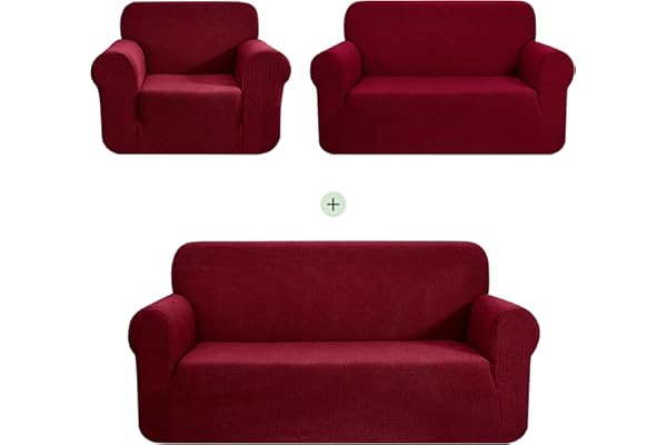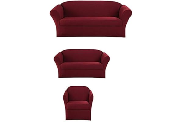Form fit Stretch, Wrinkle Free, Furniture Protector Cover Set for 3/2/1 Cushion, Polyester Spandex, 3pc Slipcover, Burgundy