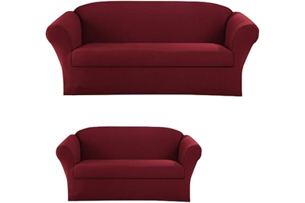 Form fit Stretch, Wrinkle Free, Furniture Protector Cover Set for 3/2 Cushions, Polyester Spandex, 2pc Slipcover Set, Burgundy