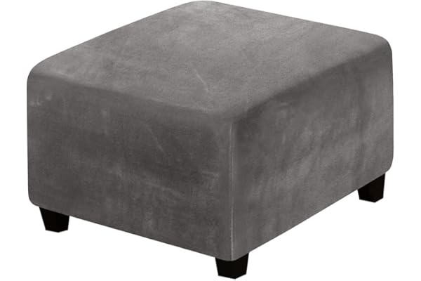VIENLOVE Square Ottoman Slipcover Stretch Velvet Folding Storage Stool Furniture Protector Stretch Ottoman Cover with Elastic Bottom Machine Washable (Gray)