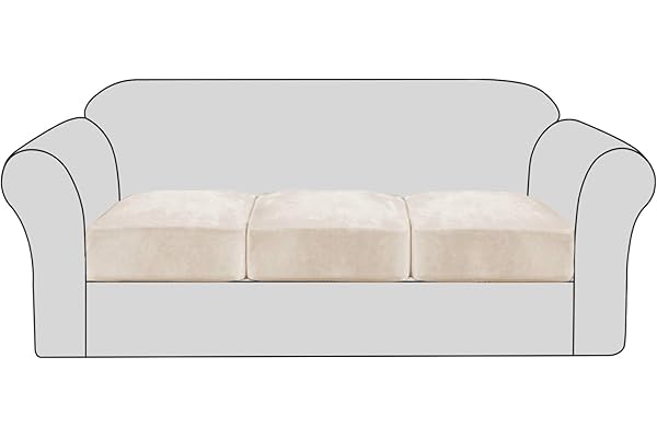 H.VERSAILTEX Velvet Stretch Couch Cushion Cover Plush Cushion Slipcover for Chair Loveseat Sofa Cushion Furniture Protector Seat Cushion Sofa Cover with Elastic Bottom Washable (3 Packs, Ivory)