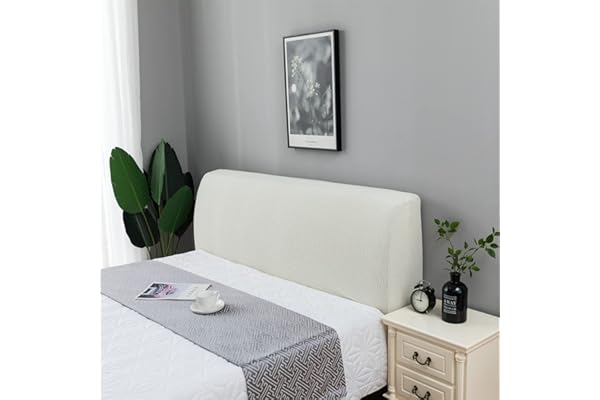 Fvstar Stretch Solid Color Headboard Slipcover All-Inclusive Headboard Dustproof Cover Queen King Size Slipcover for Bedroom Decoration (White, Queen 59"-67")