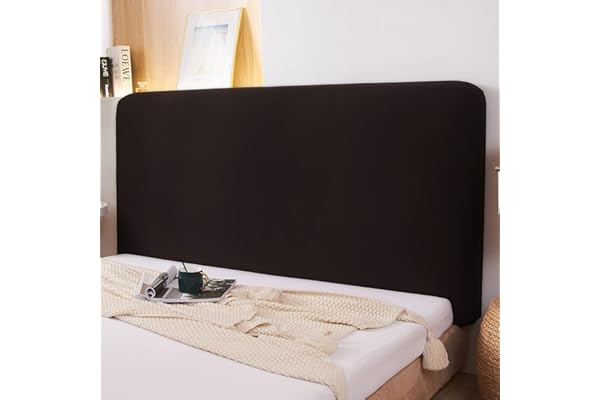 WOMACO Stretch Bed Headboard Slipcover 180 GSM Thick Fabric Solid Color Dustproof Bed Head Protector Cover for Bedroom Décor (Dark Coffee, 59-67")