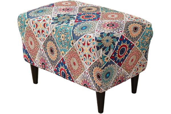 HAOYONG Stretch Ottoman Slipcover Rectangle Storage Stool Cover Printed Foot Rest Cover with Elastic Bottom for Living Room (1 Piece)