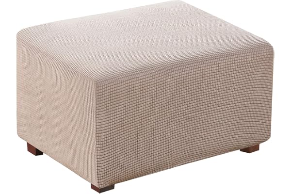 Oversized Ottoman Slipcover Jacquard Polyester Stretch Fabric Rectangle Folding Storage Stool Ottoman Cover Furniture Protector for Living Room (X-Large, Sand)