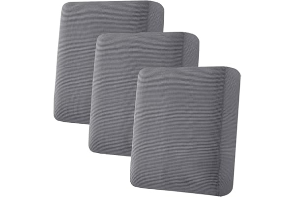 H.VERSAILTEX Super Stretch Individual Seat Cushion Covers Sofa Covers Couch Cushion Covers Slipcovers Featuring Thick Jacquard Textured Twill Fabric (3 Piece Sofa Cushion Covers, Grey)