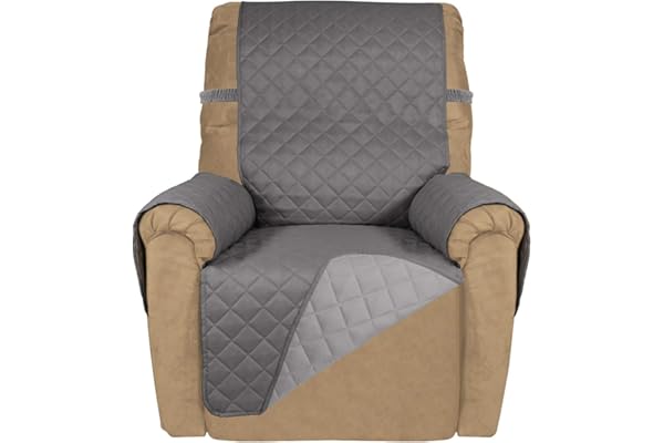 Water Resistant Slipcover Furniture Protector, Washable Couch Cover with Elastic Straps for Kids, Dogs, Pets (Recliner, Gray/Light Gray)