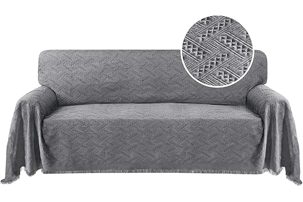 Turquoize Cotton Sofa Cover Couch Cover Grey Couch Protector Sofa Throw Cover For Couches Washable Sectional Sofa Couch Covers For Dogs Feature Geometrical Woven Jacquard Fabric(71"x118",X-Large,Grey)