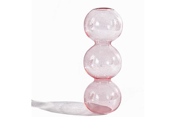 Three Balls 6.5” Tall Transparent Plant Glass Pots, Suitable Weddings/Party/Events/Decorating Home Office or Dinning/Living Room(Pink)