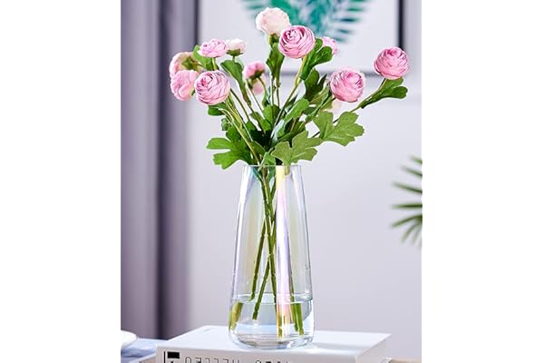 Aoderun Flower Glass Vase for Decor Home Handmade Modern Large Flower Vases for Centerpieces Living Room Kitchen Office Wedding 8.7 Inch ( Iridescent Clear )