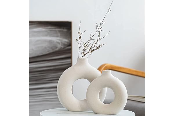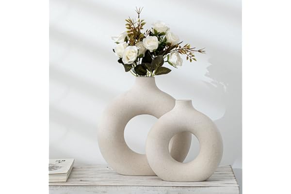 Leicofay Ceramic Hollow Donut Vase Set of 2