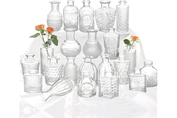 Small Vases for Flowers, Clear Glass Vases for Centerpieces, Mini Bud Vases in Bulk Rustic Wedding Decorations, Centerpieces, Vintage Look Home Table Flower Decor