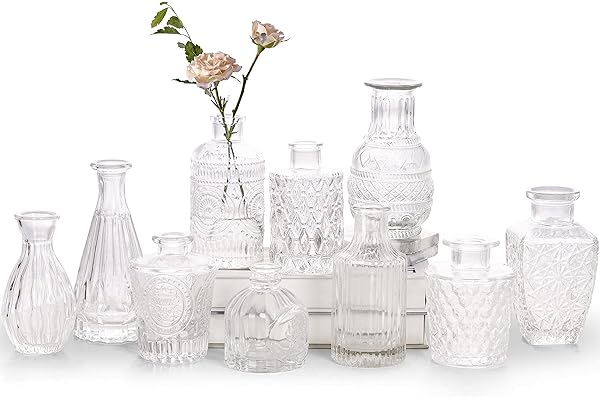 Small Vases for Flowers, Clear Bud Vases in Bulk, Cute Glass Vases for Centerpieces, Mini Vintage Vase for Rustic Wedding Decorations, Home Table Flower Decor