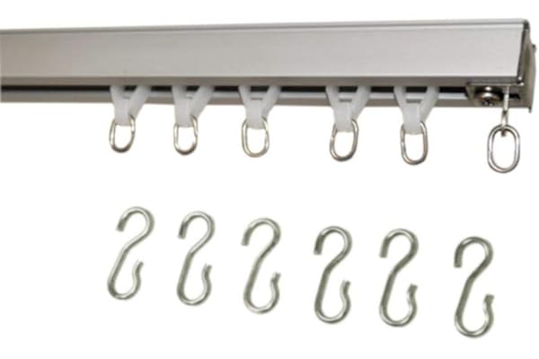 Ceiling Curtain Track Set with Wheeled Carriers and Hooks (13' in 2 Sections-Silver)
