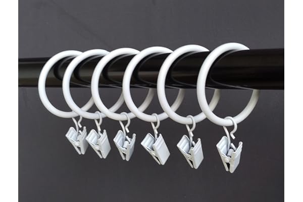 T-Juan MM (1.25") 1.25 Inches Smooth Metal Curtain Rings with Clips (White) (14)