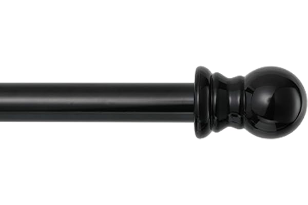 1" Diameter Metal Single Adjustable Telescoping Curtain Rod with Finials (Black, 30-44")