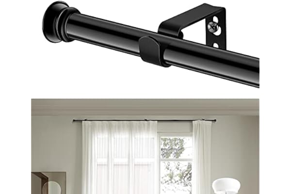 1 Inch Black Curtain Rod Set, Stainless Steel Heavy Duty Drapery Rods with Adjustable Brackets for Room Divider, Bedroom, Living room, Kitchen, Bathroom, Black