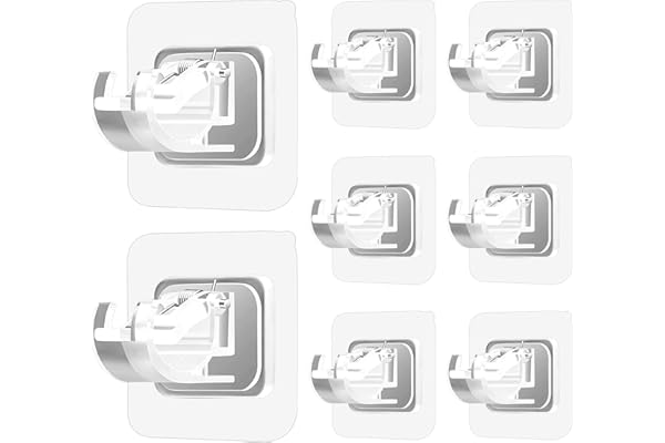 8PCS No Drill Curtain Rod Brackets No Drilling Self Adhesive Curtain Rod Holder Hooks Nail Free Adjustable Curtain Rod Hooks Curtain Hangers for Bathroom Kitchen Home Bathroom and Hotel (Transparent)