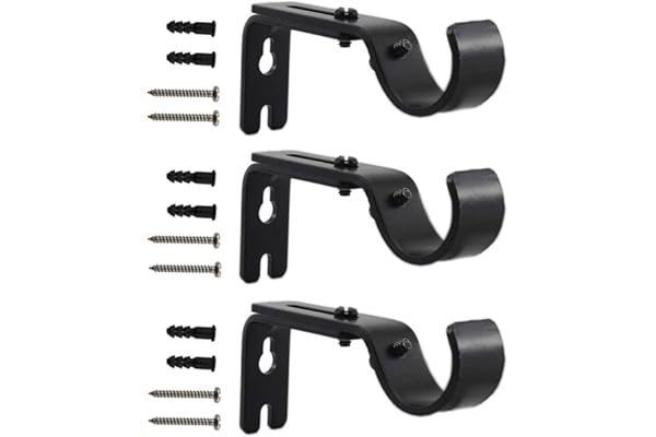 3 Pack Heavy Duty Drapery Rod Holders Hardware Window Curtain Rod Support Hanger for 1 Inch Rod with Installation Screws (Black)