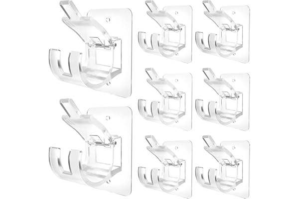 8PCS Upgraded No Drill Curtain Rod Brackets No Drilling Curtain Rod Holders Self Adhesive Curtain Rod Hooks Nail Free Adjustable Curtain Hangers for Poles Less Than 4cm in Diameter(Transparent)
