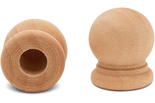 3/4 Inch Tall with 1/4 Inch Hole, Unfinished Wood Finials for 1/4 Inch Dowel Rods, Wood Dowel Caps for Crafts and DIY, Pack of 24 by Woodpeckers